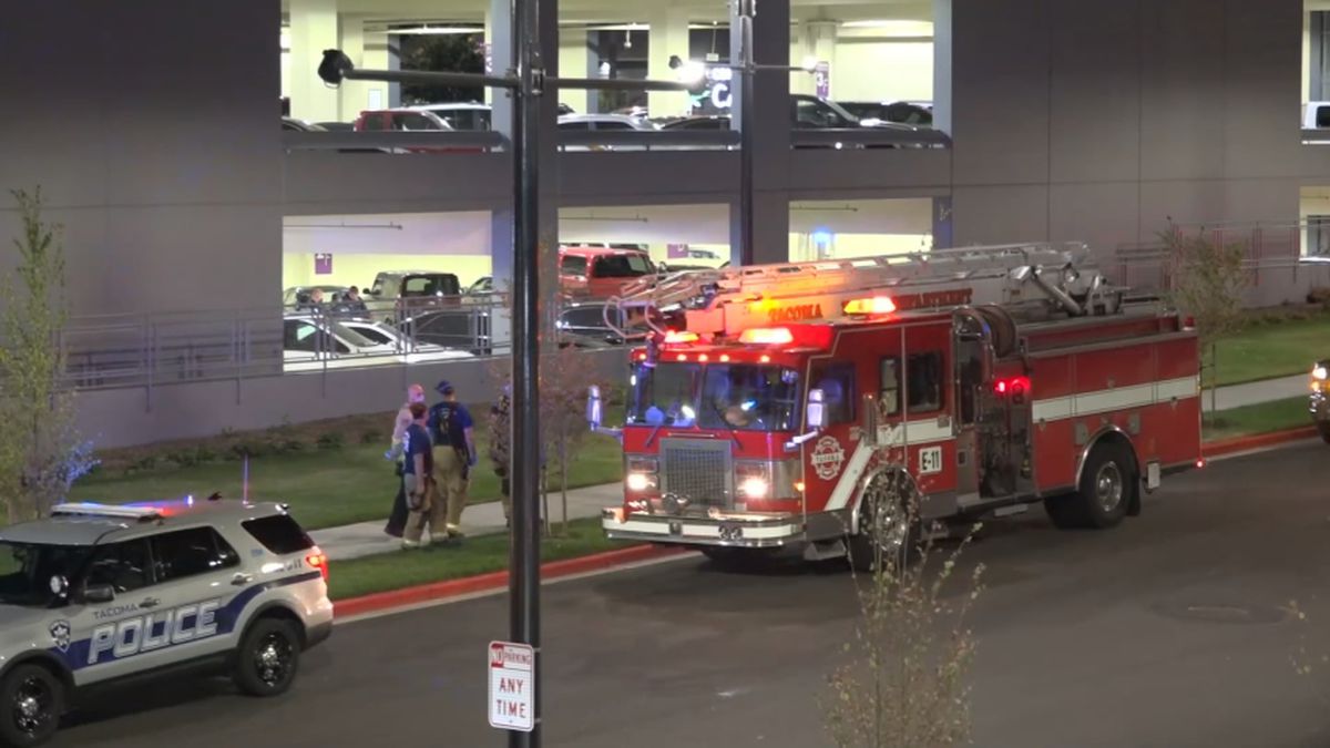 Police and firefighters respond to last month’s fatal shooting at an Emerald Queen Casino parking garage in Tacoma, Washington.