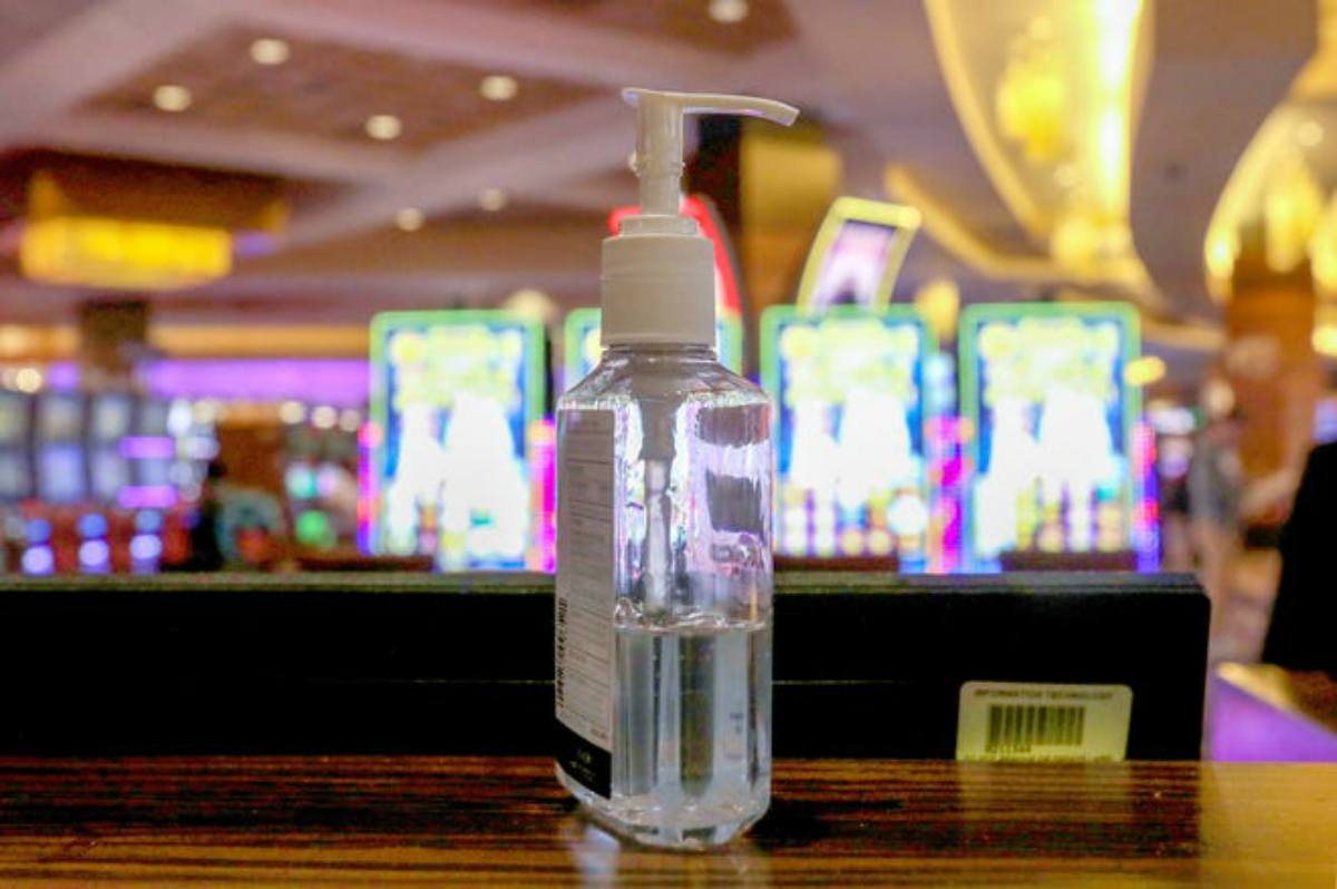 Hand sanitizer has become a casino floor staple and will be found throughout each of Detroit’s three casinos when they reopen next month. (Image: Eric Seals/Detroit Free Press)