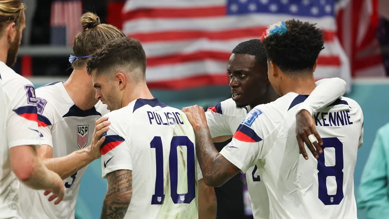 Members of the US Men’s National Team celebrate a World Cup goal against Wales in their opening match. They meet England today in a tough contest. (Image: Getty Images)