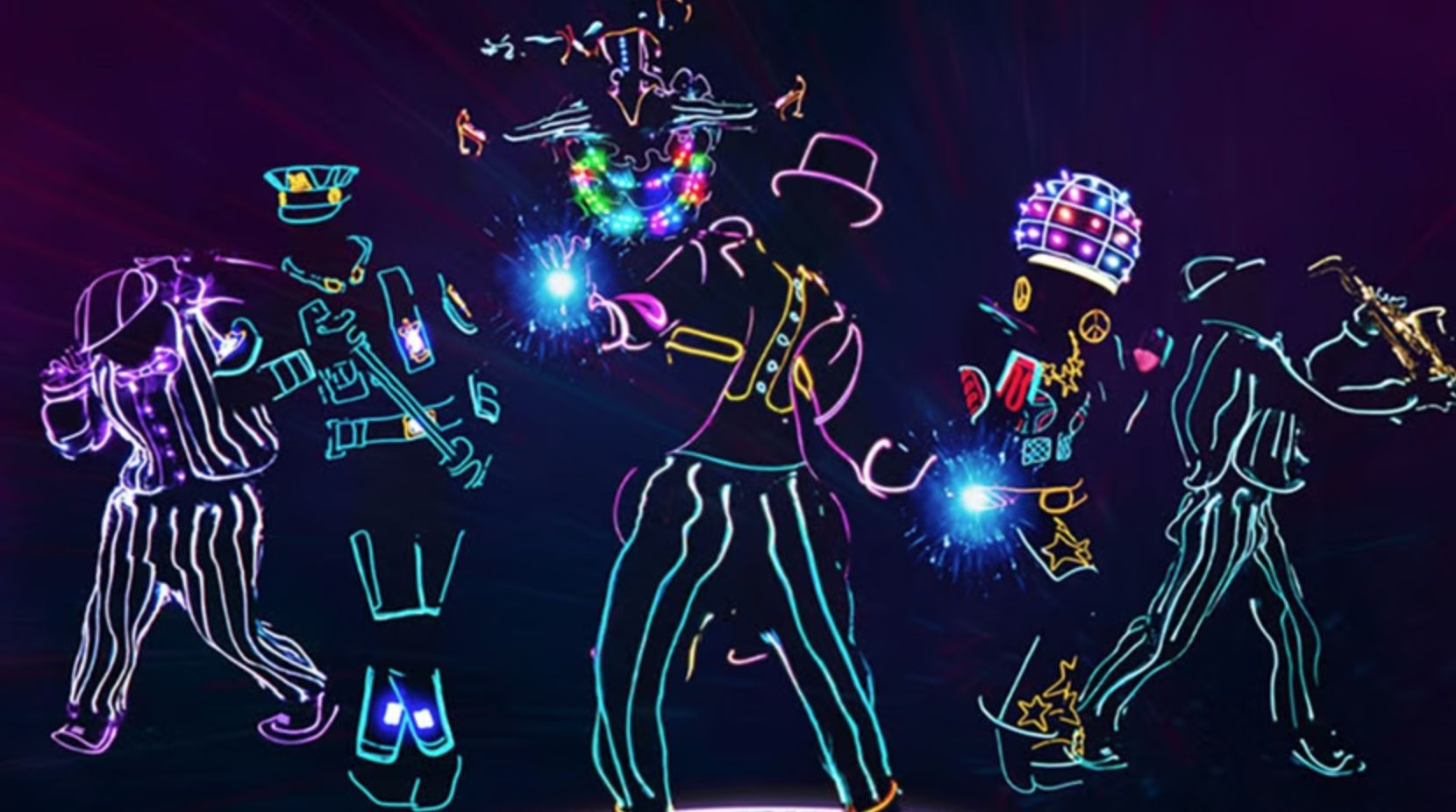 It takes place on a darkened stage, where dynamic dancers wear “electrified glow-in-the-dark suits” using patented “iLuminate” technology. They inventively strut their stuff to a red-hot mix of tracks, including Michael Jackson’s “Smooth Criminal,” Bruno Mars’ “Uptown Funk,” and Janet Jackson’s “Feedback.”