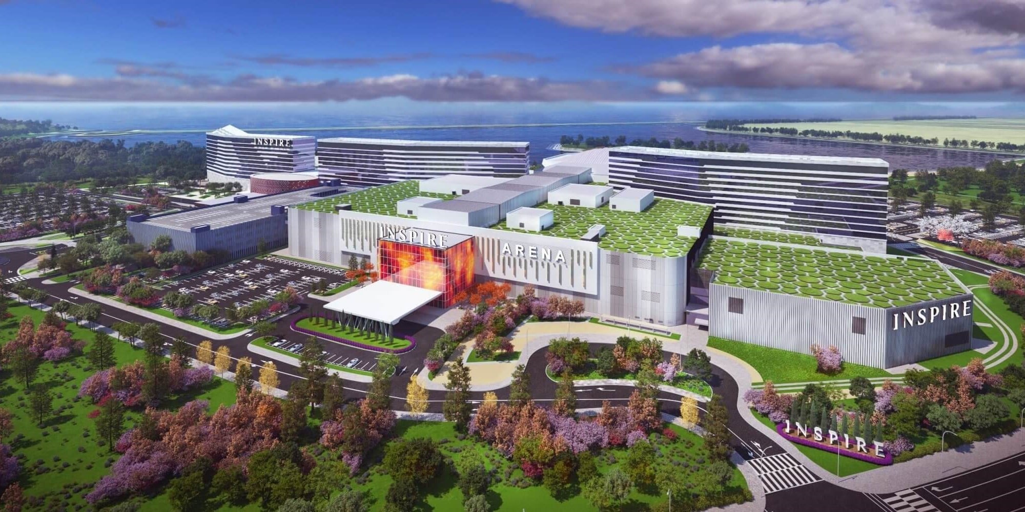 Besides the arena, the first phase of the development includes three five-star hotels, an indoor water park, a convention center, and an outdoor park.